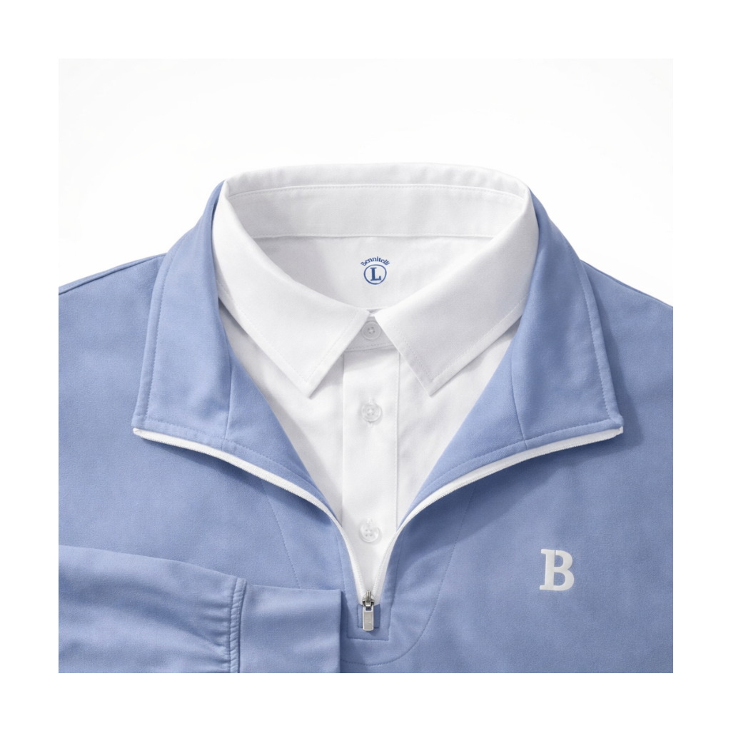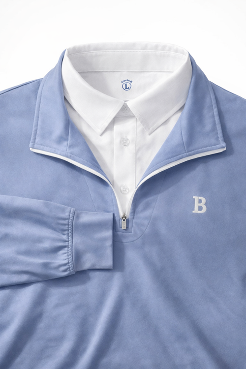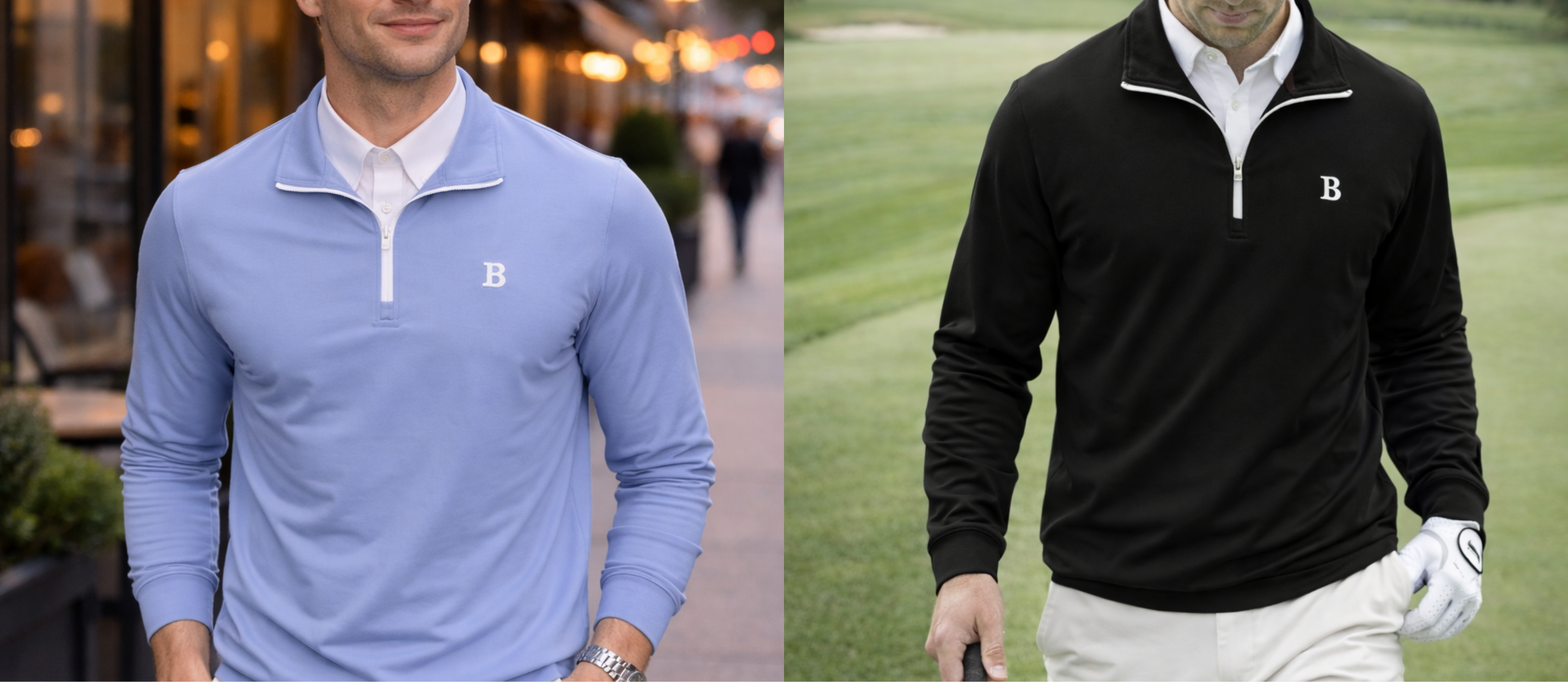 This started with one frustration. Quarter zips over polos never sit right. So we built the only quarter zip with a built-in polo. One clean piece that actually works.